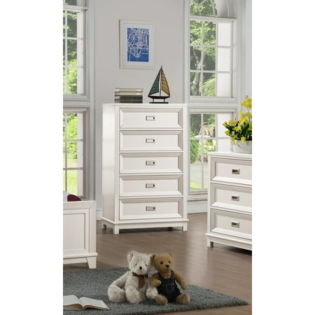 Victoria White Wood 5 Drawer Contemporary Kids Bedroom Chest