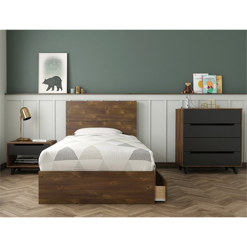 Juno 4 Piece Twin Size Bedroom Set Walnut Black 402111
