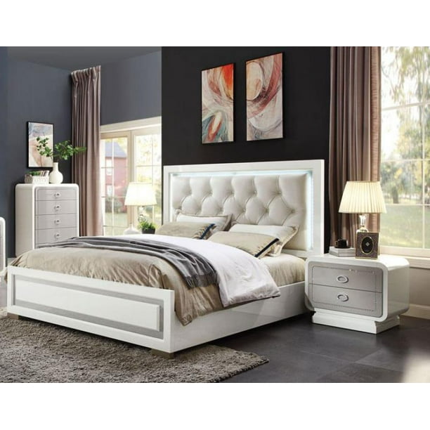 Ivory High Gloss Finish King Bedroom Set 3pcs Acme Furniture