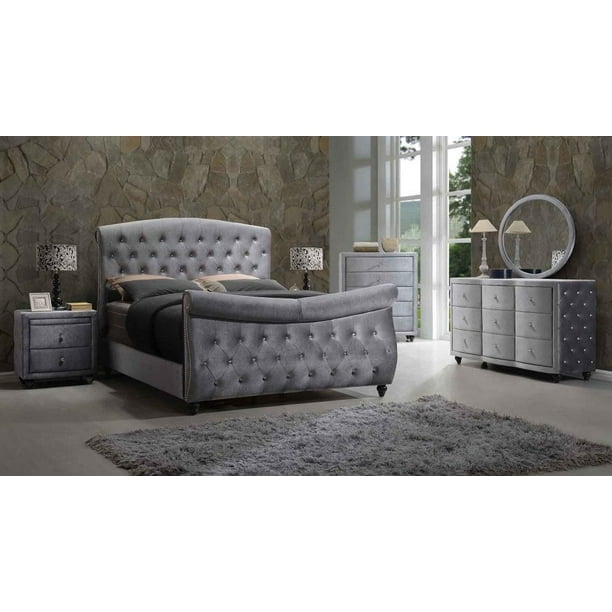 Meridian Hudson Sleigh King Size Bedroom Set In Grey 2 Night