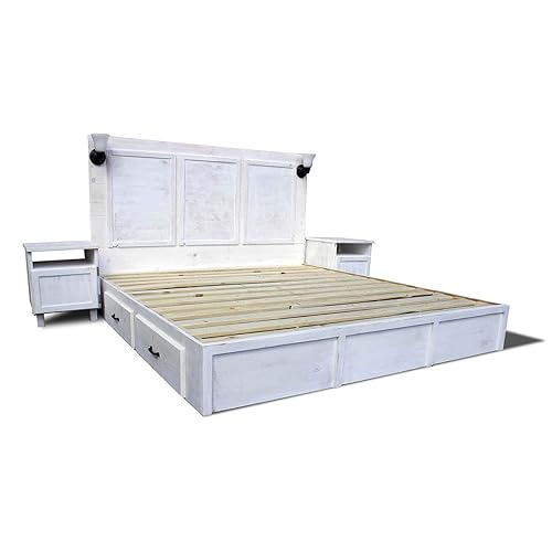 Authentic Solid Wood White Wash Rustic Bedroom Set Dallas