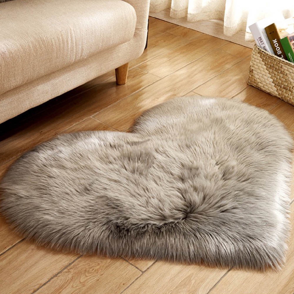 Love Heart Shaped Shaggy Fluffy Rugs Anti Skid Area Rug Carpet