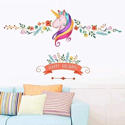Wall Sticker Unicorn Flower Branch Happy Holidays Diy Girls